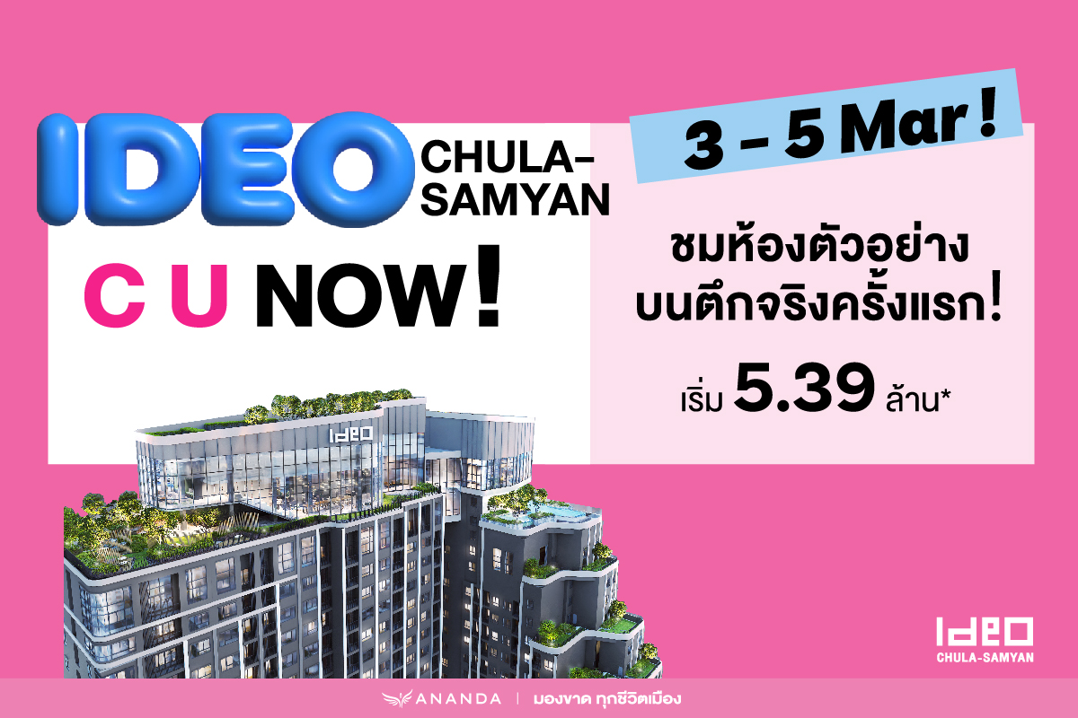 บอกเลยว่าถ้าใครคิดที่จะซื้อคอนโดแถวนี้ นาทีนี้เวลานี้ต้อง 𝗜𝗗𝗘𝗢 𝗖𝗵𝘂𝗹𝗮 – 𝗦𝗮𝗺𝘆𝗮𝗻 เท่านั้น มีแต่ได้กับได้ ทั้งอยู่เองก็สะดวก ทั้งลงทุนก็สบาย ห้ามพลาดเด็ดขาด จดวันกันไว้เลย 3-5 มี.ค.นี้ เปิดจองรอบ 𝗘𝗮𝗿𝗹𝘆 𝗕𝗶𝗿𝗱 ก่อนเข้าอยู่จริง พ.ค. นี้