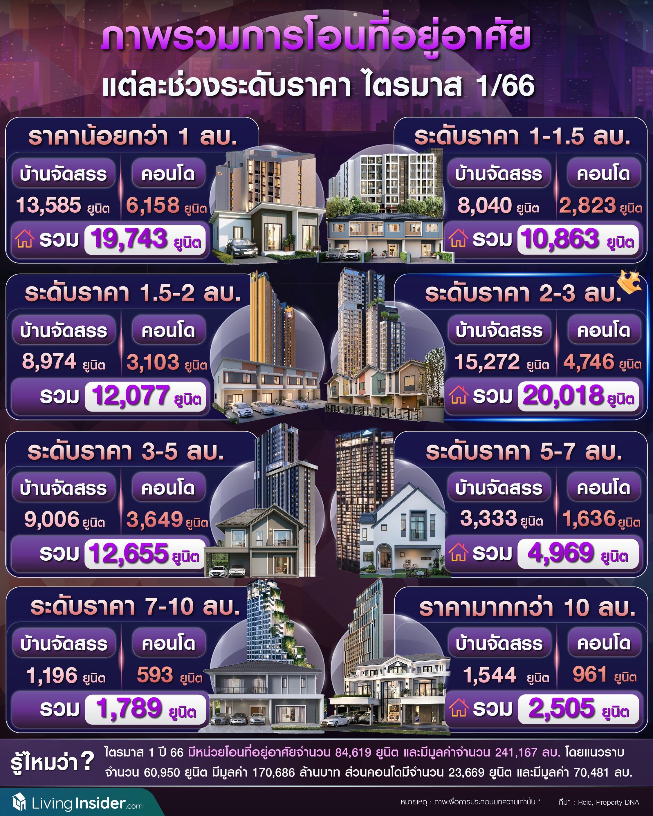 บ้าน คอนโด ช่วงราคาไหน 🔥 ขายดีสุด มาดูกัน กับภาพรวมการโอนที่อยู่อาศัย แต่ละช่วงระดับราคา ไตรมาส1 ในปี 2566