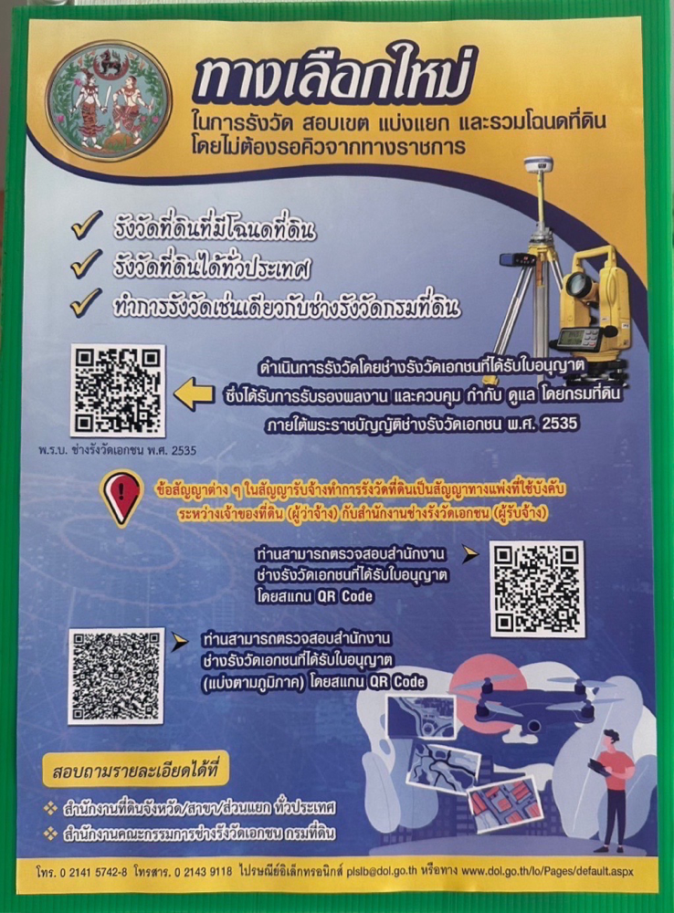 ช่างรังวัดเอกชนช่วยแบ่งเบางานรังวัดของสำนักงานที่ดิน 461 แห่งทั่วประเทศที่ช่างรังวัดของทางราชการไม่พอเพียง