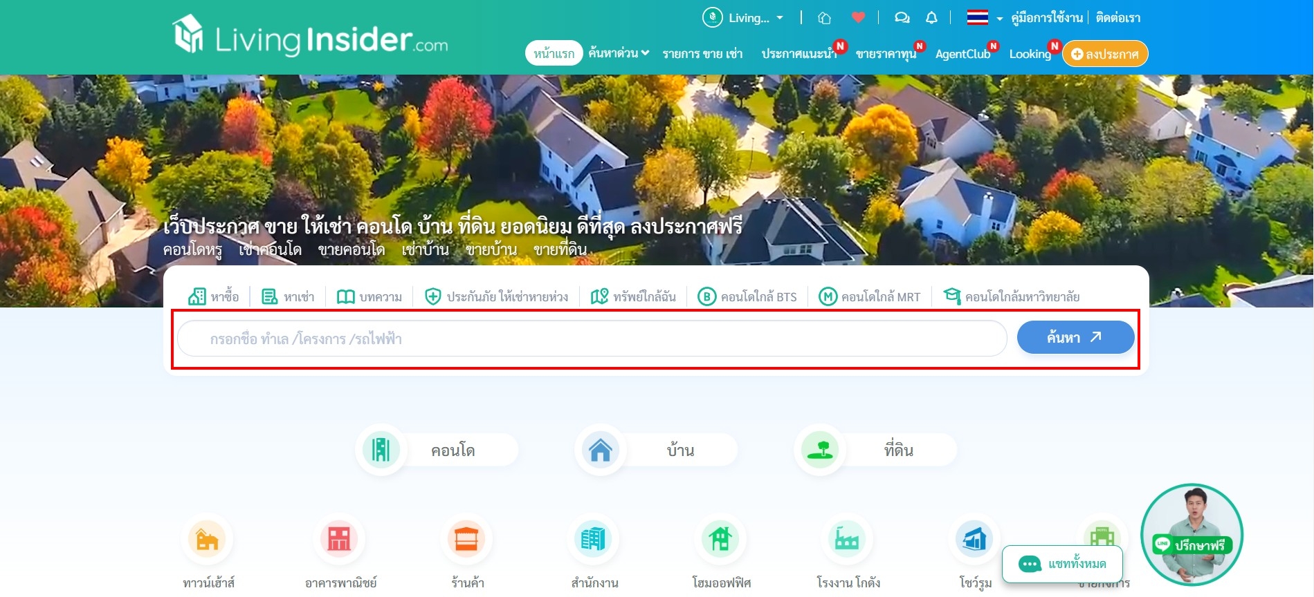 ขั้นตอนแรก : กรอกชื่อ ทำเล หรือโครงการที่คุณต้องการค้นหาได้เลย เช่น “สวนสัตว์เปิดเขาเขียว” และกดค้นหา🔎