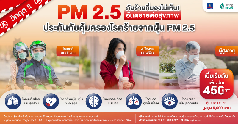 ⚠️ ฝุ่น PM 2.5 ภัยร้ายที่มองไม่เห็น ปกป้องตัวเองด้วยประกันภัยโรคจากฝุ่น 😷🛡️
