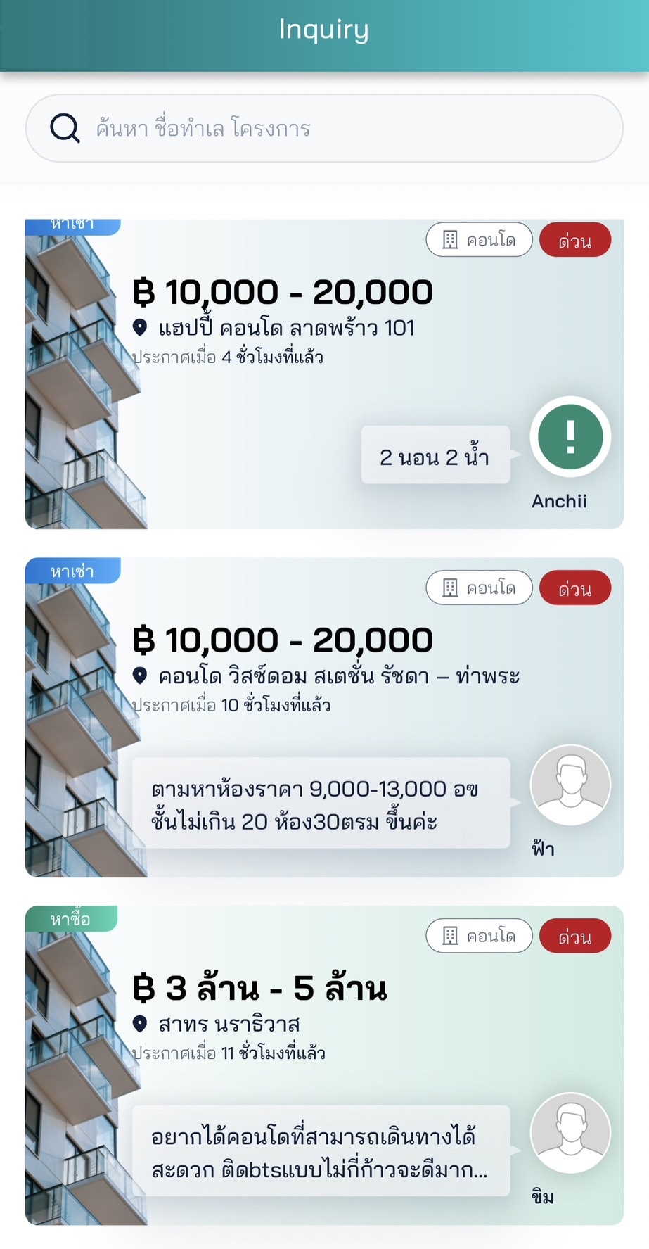 ที่สำคัญ ฟีเจอร์นี้ ใช้งานง่ายมากๆ แค่เข้าแอป AgentAble จากนั้นกดคลิกเข้าฟีเจอร์ Property inquiry ถ้าเรามีทรัพย์ที่ตรงกับความต้องการของลูกค้า