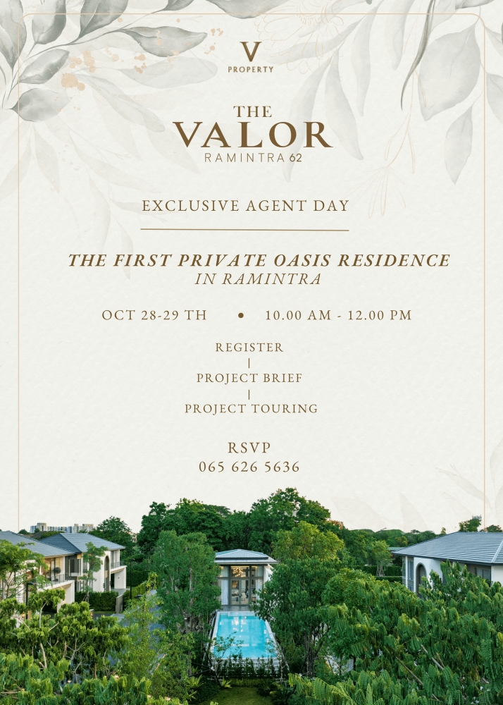 🔥 นายหน้า ห้ามพลาด !!! โอกาสรับค่าคอมฯก้อนใหญ่ และสิทธิ์ในการเข้าถึงสต็อคบ้านหรูทำเลรามอินทรา The Valor Ramintra 62 เรียนเชิญเพื่อน Agent ร่วมงาน Agent Day 28-29 ต.ค 2566