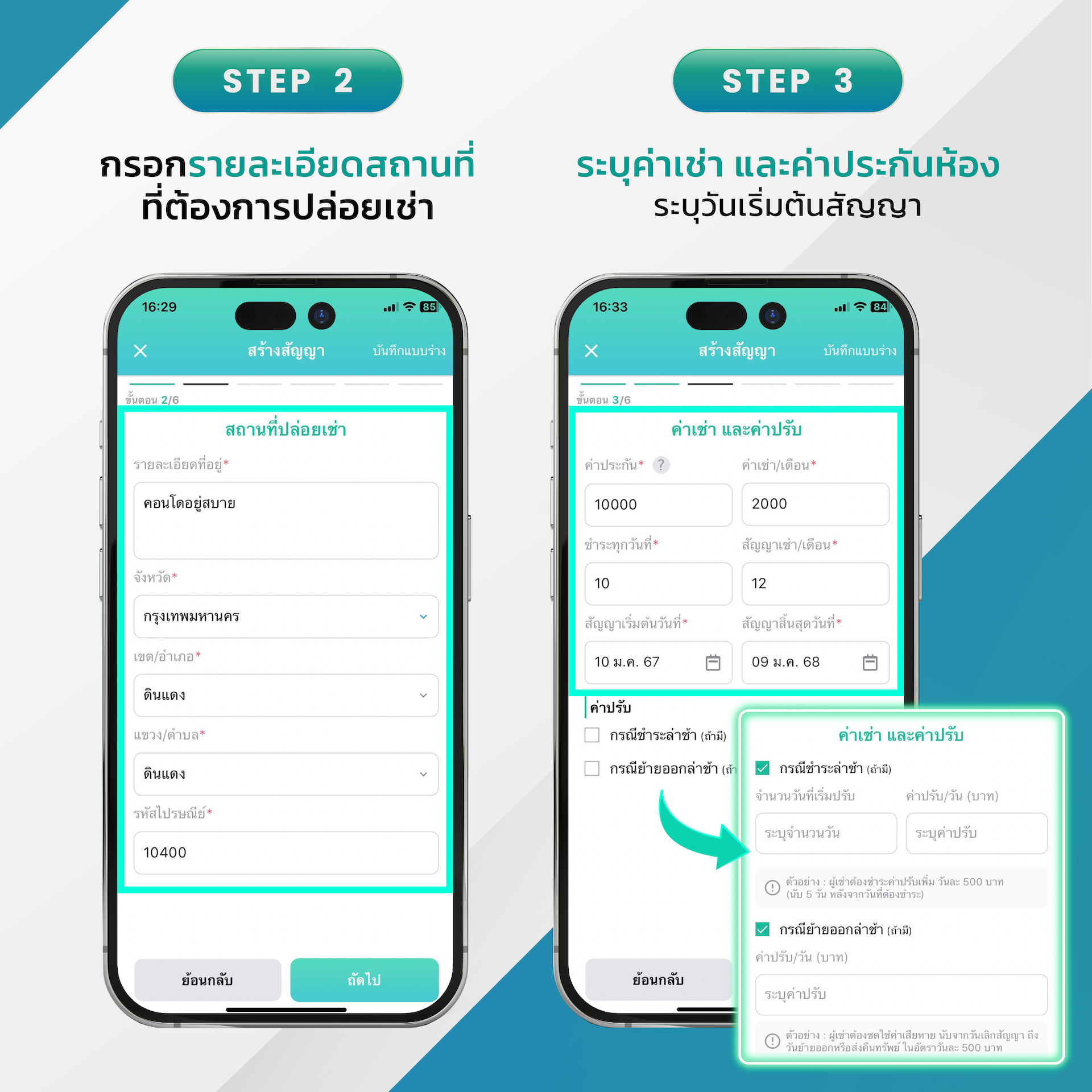 *ในกรณีมีค่าปรับ สามารถเลือกได้ 2 กรณีคือ 1.ค่าปรับกรณีชำระล่าช้า 2.ค่าปรับกรณีย้ายออกล่าช้า