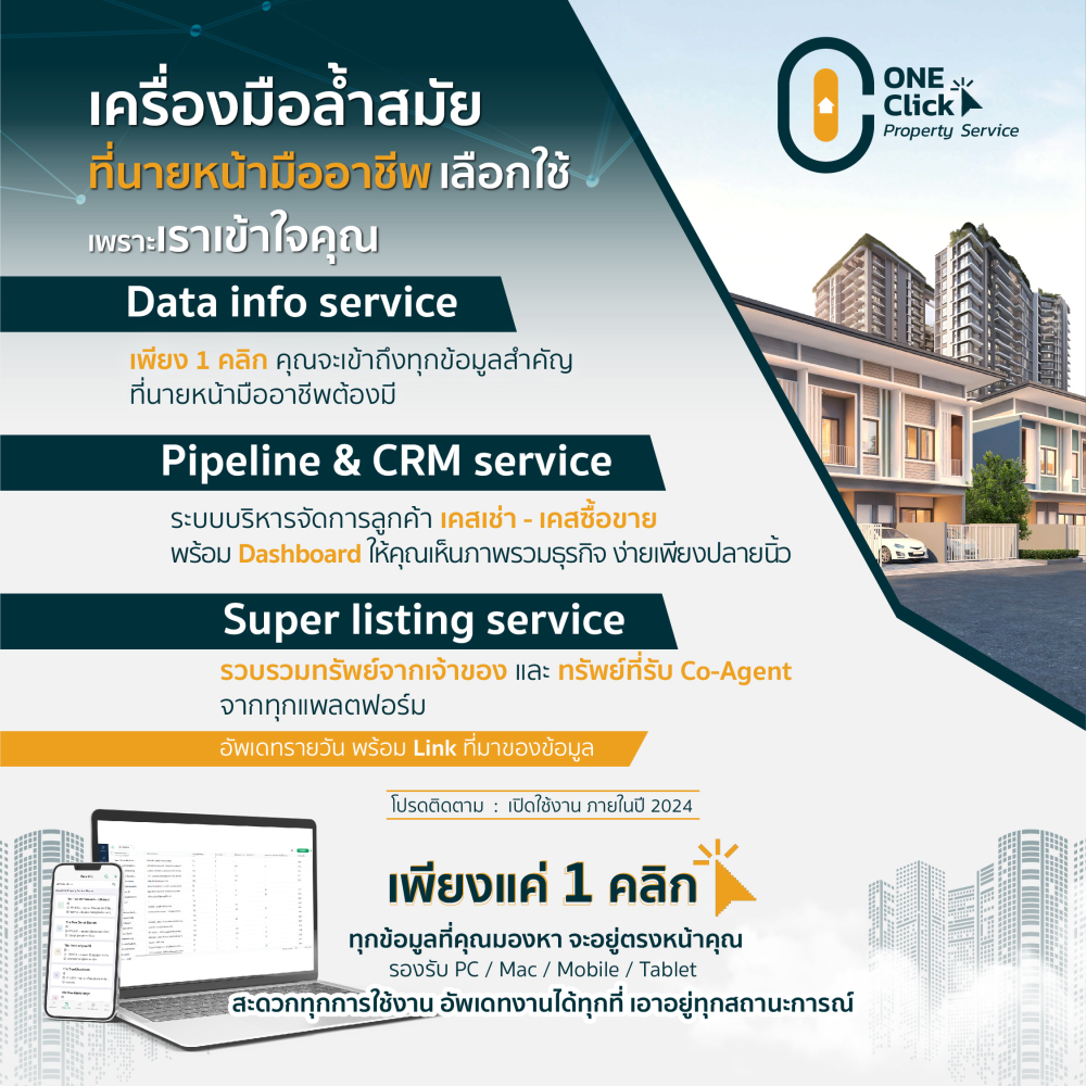 One-Click Property Service กำลังจะเปิดให้ทดลองใช้โปรแกรมฟรี ในช่วงกลางเดือน กุมภาพันธ์ 2567 นี้ครับ