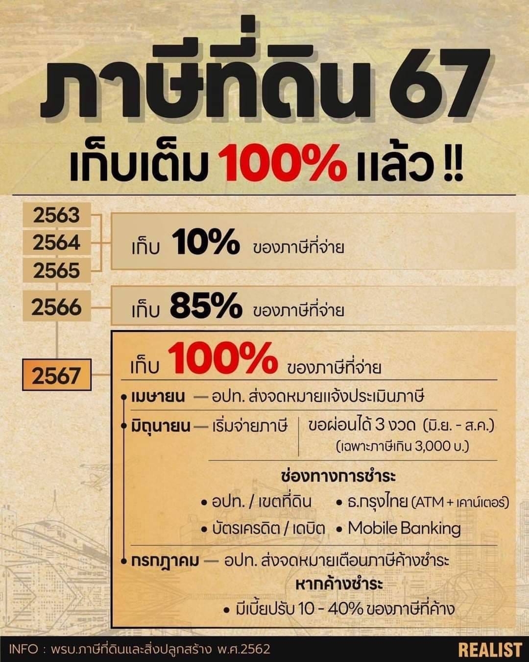 🤑 ภาษีที่ดิน 2567 เก็บเต็ม 100% แล้ว!!!