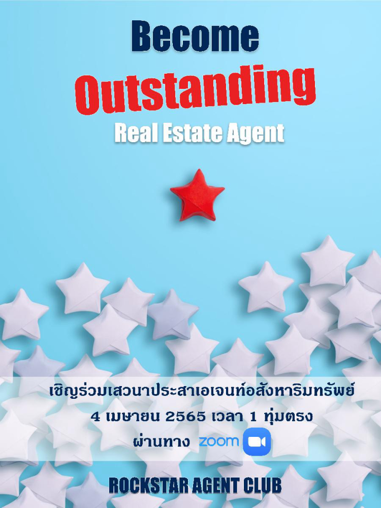 ร่วมกิจกรรม หัวข้อเสวนาเพื่อ level up ธุรกิจของคุณ " Become Outstanding Real Estate Agent " ในโลกที่การแข่งขันสูง ลูกค้าท่วมท้นไปด้วยข้อมูล และตัวเลือกคุณจะโดดเด่น ดึงดูดใจให้ลูกค้าเลือกทำงานกับคุณได้อย่างไร?