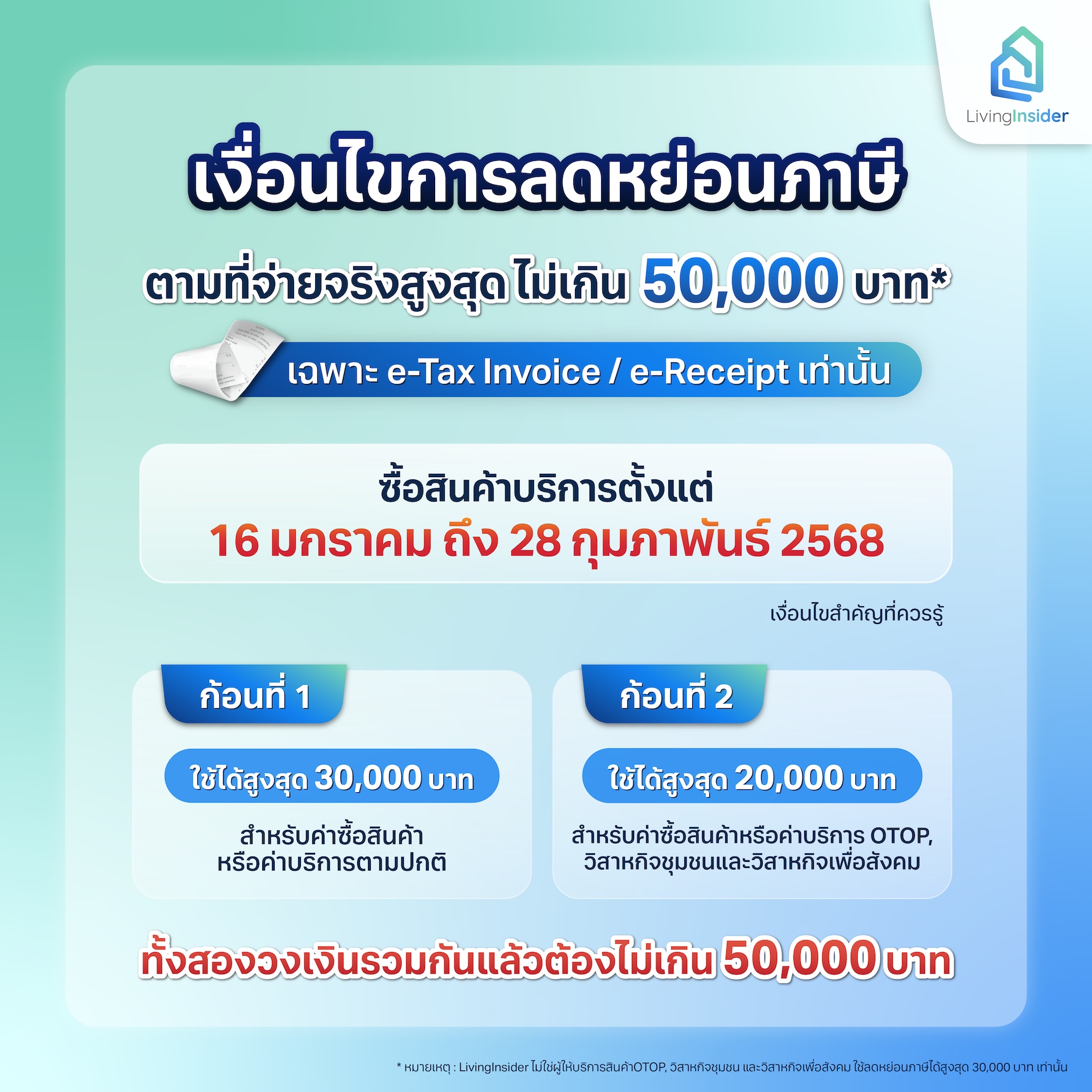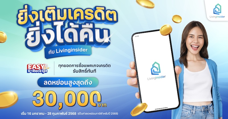 🔥🔥ยิ่งเติมเครดิต ยิ่งได้คืน ลดหย่อนภาษีได้สูงสุดถึง 30,000 บาท!! เพียงซื้อแพ็คเกจ และบริการอื่นๆของ Livinginsider รับสิทธิ์ Easy E-Receipt