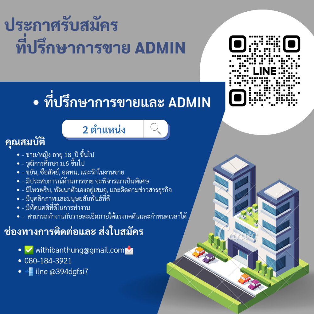💥รับสมัคร ที่ปรึกษาการขายและแอดมิน 2 ตำแหน่ง