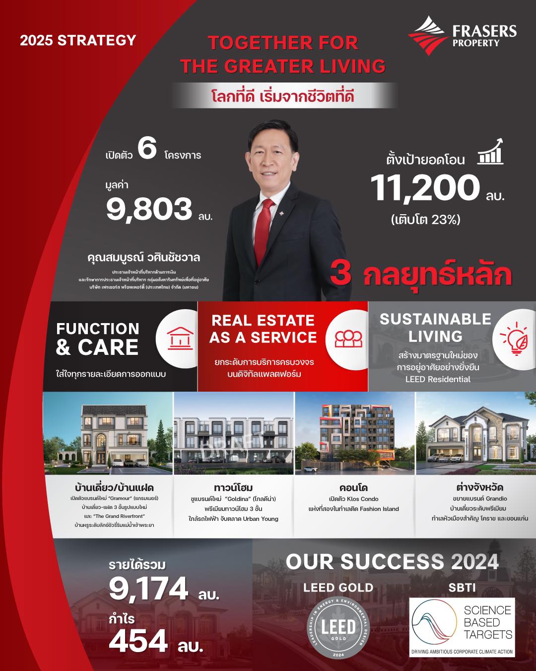 เฟรเซอร์ส พร็อพเพอร์ตี้ ปี 2568 ตั้งเป้ารายได้ 11,200 ล้านบาท เติบโต 23% ตอกย้ำแบรนด์ระดับสากล-ยั่งยืน ภายใต้แนวคิดโลกที่ดี เริ่มจากชีวิตที่ดี นำร่องบ้านมาตรฐาน LEED รายแรกในไทย และ SEA