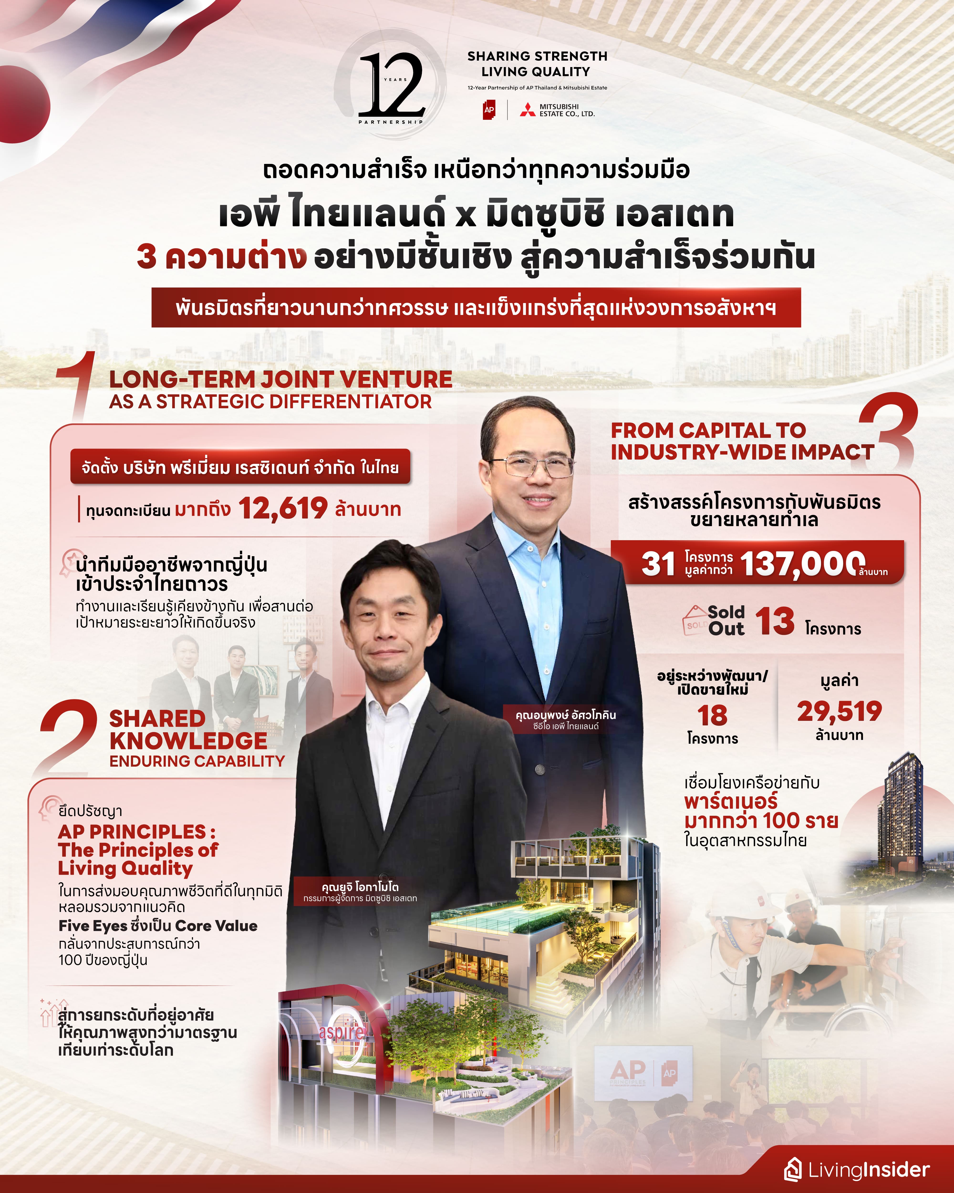 ถอดความสำเร็จ เหนือกว่าทุกความร่วมมือ เอพี ไทยแลนด์ x มิตซูบิชิ เอสเตท 𝟑 ความต่างอย่างมีชั้นเชิง สู่ความสำเร็จร่วมกัน ที่สร้างพันธมิตรมายาวนานกว่าทศวรรษ และแข็งแกร่งที่สุดแห่งวงการอสังหาฯ