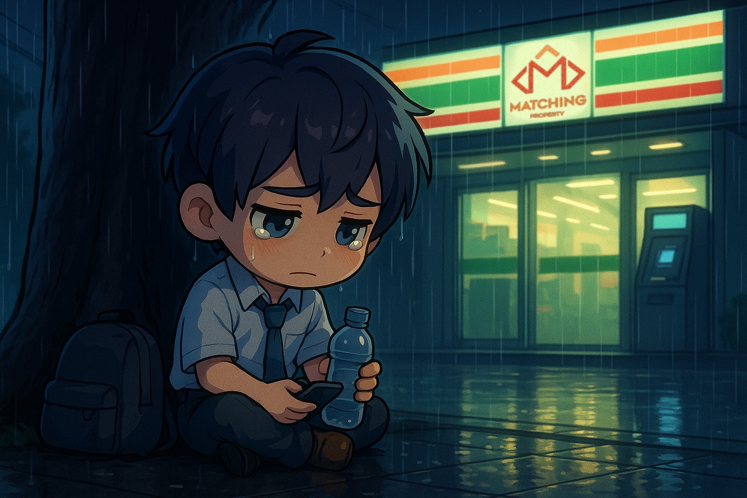 เขาเดินอยู่แบบนั้นเกือบชั่วโมง ก่อนจะนั่งลงใต้ต้นไม้ข้างเซเว่นล้วงกระเป๋าเจอธนบัตรยับ ๆ ร้อยเดียว ซื้อน้ำเปล่าหนึ่งขวด นั่งจิบเหมือนคนเมา ทั้งที่แค่น้ำเปล่า...แต่มันก็ขมจนกลืนไม่ลง